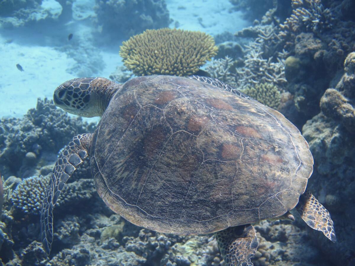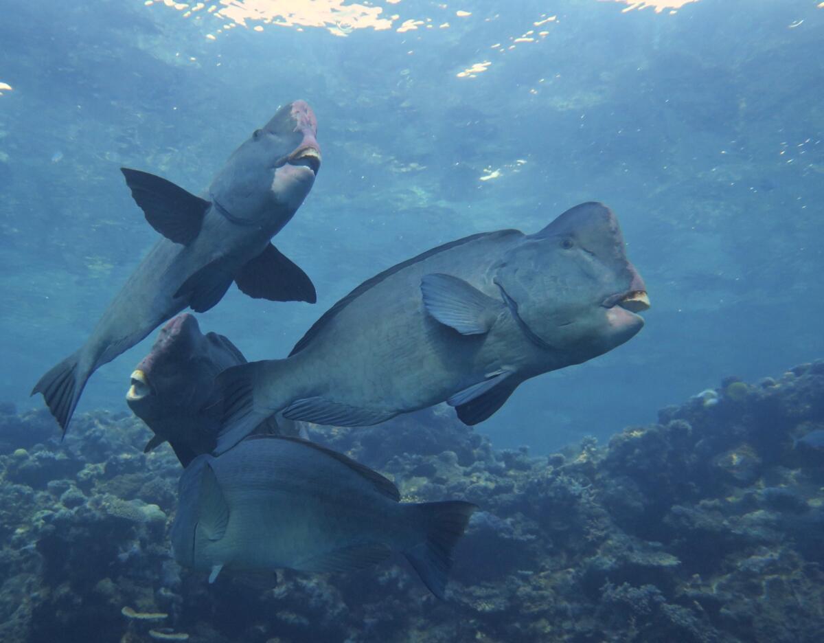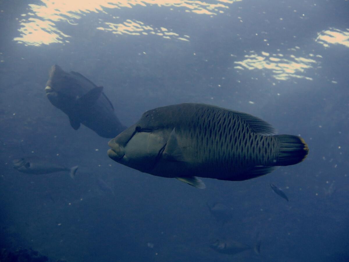 Die 10 Tauchgänge (tagsüber wie nachts) sind absolute Highlights und es herrscht eine Fisch-Völlerei, das ist bemerkenswert. Sobald man abgetaucht ist und seine Tarierung gecheckt hat, schwimmt schon eine Schildkröte an einem vorbei. Wenn man zur anderen Seite schaut, inspiziert ein fast schon zutraulicher Napoleon (hier Wrasses genannt) die komisch blubbernde Gruppe da unten. So schnell sind die 45 Minuten Spaziergang rum und ich bin völlig geplättet von den ganzen Eindrücken.