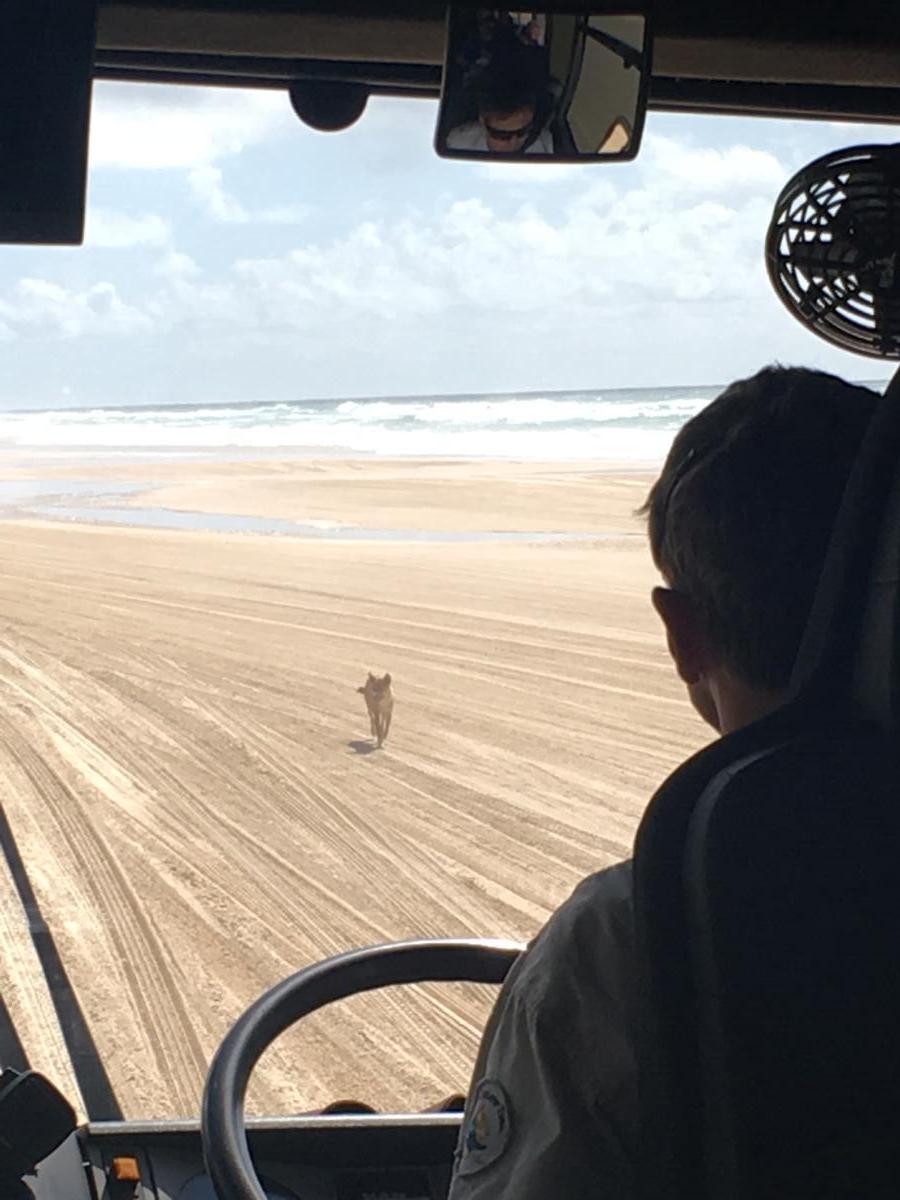 Mit der Fähre ging es früh auf die Insel, wo wir in einen 4 Wheel Drive Bus umstiegen. Was ein Ritt! Mit dem Streitroß-Bus donnerten wir über die sandigen Wege der Wälder und den Stränden der Insel. Der 75 Miles Beach ist ein anerkannter Highway, auf dem es ab und an wirkliche Blitzer gibt. Unser Guide Wayne war einfach der Knaller! Entertainment pur (“watch out, hired car!”) . Ich glaube, er hatte mehr Spaß an unserem bumpy ride, als so mancher bei uns im Bus („Hold on, here is another one!“)