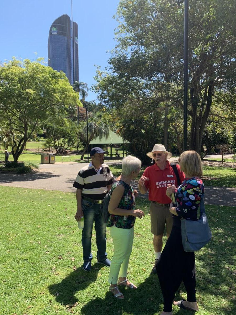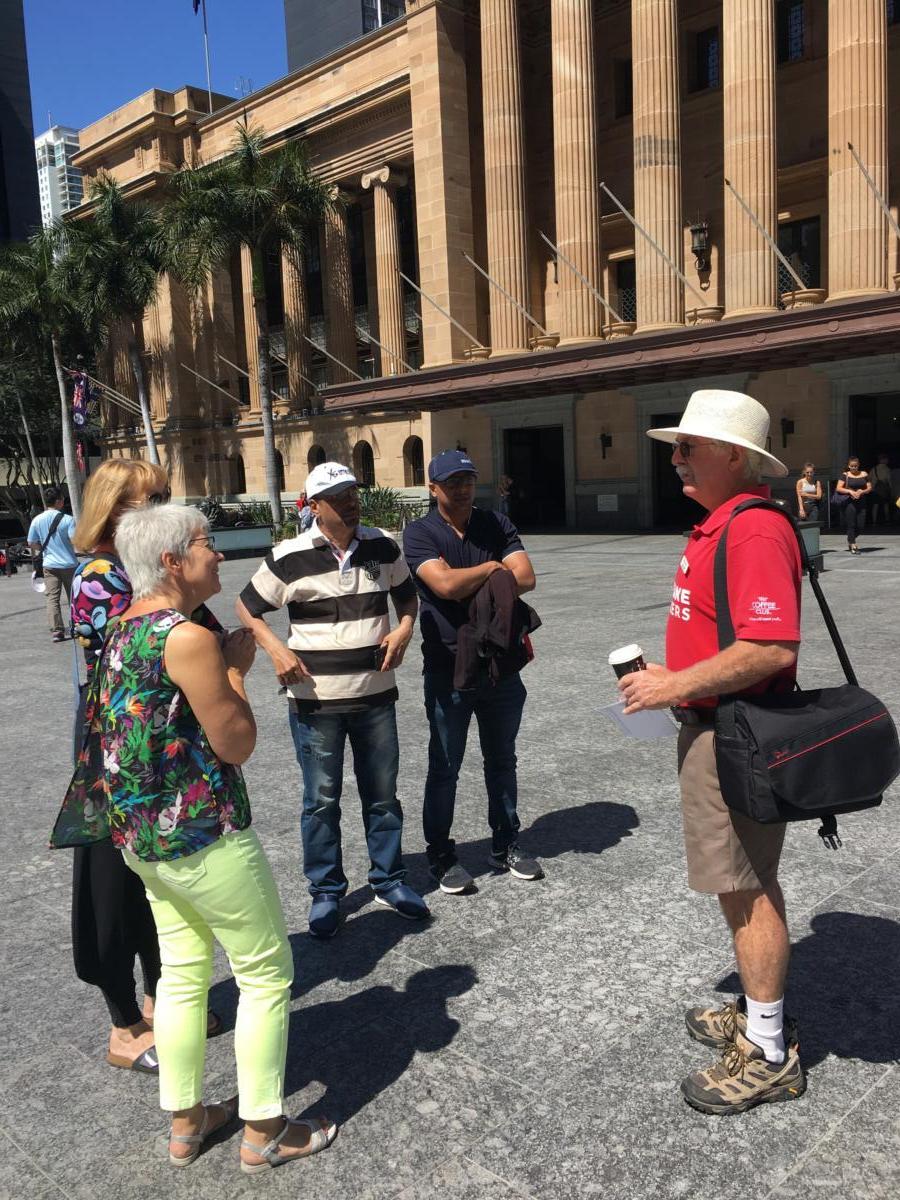Ich mache eine Brisbane Greeters Tour (http://www.visitbrisbane.com.au.) Das gibt es hier in den Großstädten oft, dass Anwohner Touristen-Gruppen kostenlos “ihre Stadt” zeigen. Wir hatten Glück mit Neil Sivyer nicht nur einen gebürtigen Brisbaner, sondern auch noch einen ehemaligen Lehrer und Hobby-Historiker als Führer zu haben. In einer kleinen Gruppe von 5 Leuten “scheuchte” er uns (“Sorry, I am a fast walker) durch die Innenstadt und sorgte mit massig Insiderwissen, alten Erinnerungen, Geschichten über die Stadtwentwicklung und ihre Zukunft dafür, dass die 4 h wie im Fluge vergingen. Ich hätte ihm noch viele weitere zuhören können! So tief und interessant war sein Wissens-Schätz. Ein wandelndes Lexikon!