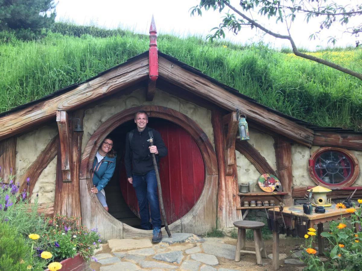 Im Auenland wird man im wahrsten Sinne wieder ganz klein. Wir beiden fühlen uns wie Riesen, wenn wir uns neben die Hobbit-höhlen stellen. Auch das Bier im „Grünen Drachen“ schmeckt ganz vorzüglich.
