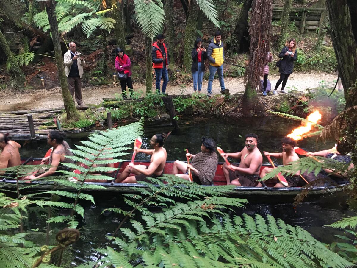 Abends nehmen wir an einem Hangi (traditionelles Maori Mahl aus dem Dampf-Ofen im Boden) teil. Zusammen mit einer Tanzeinlage und dem klassischen Haka-Tanz ist das Abendunterhaltung at its best! Sogar Glühwürmchen lassen sich nachts im Freien beobachten.