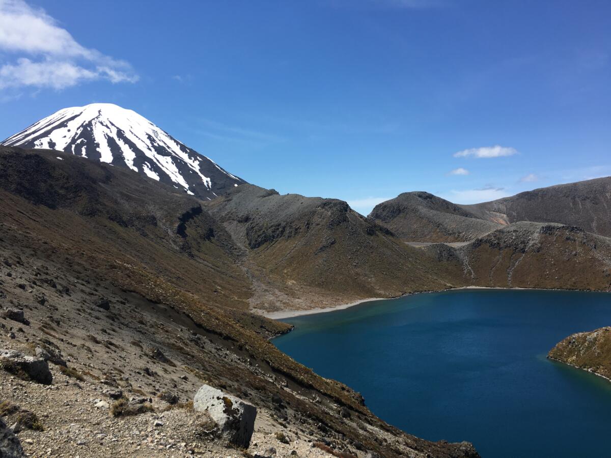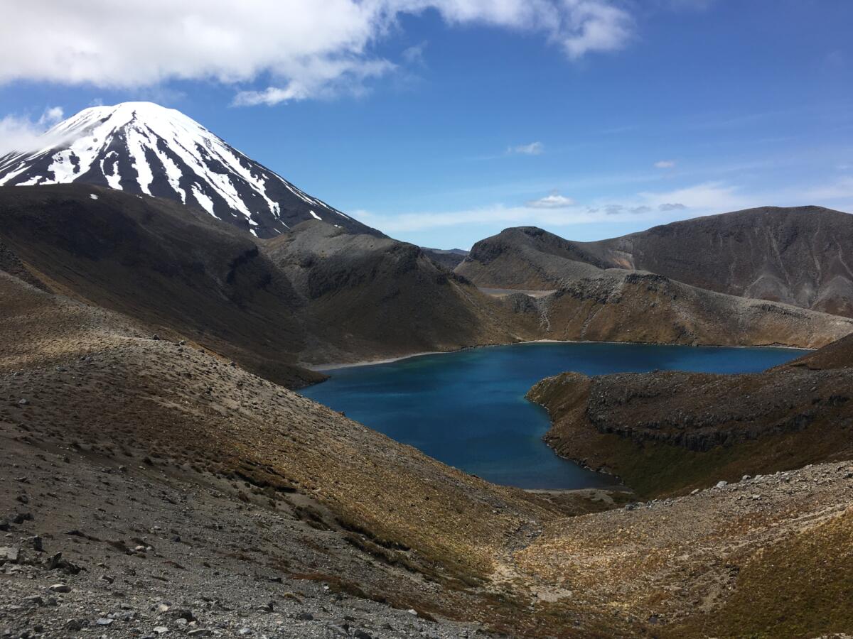 Nach dem Auenland steht heute eine Wanderung durch Mordor an. Der Tongariro NP überrascht mit außerirdischen Landschaften. Für den großen Walk Tongariro Alpine Crossing sind wir leider zu spät dran und die Wettermeldungen für die nächsten 2 Tage sind schlecht. Deswegen entscheiden wir uns für einen Alternativ-Weg zu den Tama-Lakes. Die gesamte Wanderung dauert bei uns 7 Stunden, mit vielen Fotostops dazwischen. Die mit Schnee gezuckerten Vulkane sind wunderschön! EINFACH NUR WOW! Da kommt man aus dem Staunen nicht mehr heraus.